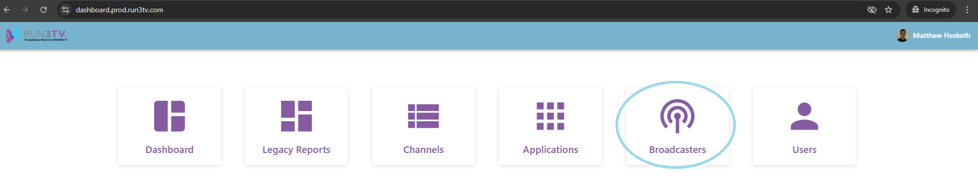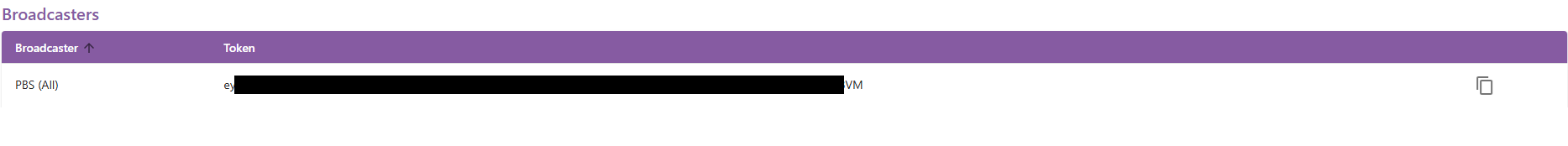 The Broadcasters Manager will show the API bearer token that can be used when interacting with the Run3TV Infrastructure.