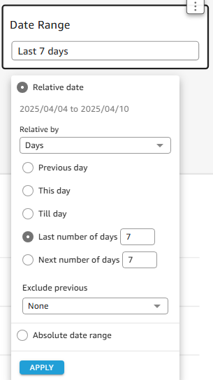 To extend the reporting range make changes to the number of days in the "Last number of days" box, or change the relative reporting to weeks or months in the drop-down.