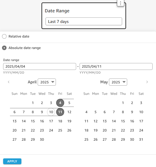 💡Note: selecting a long date range can cause some graphs to time out before they are able to load all the data.